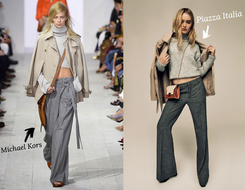 Il trench? Un must che non va ai in soffitta! Come si porta questa stagione? Corto e con dettagli maschili come quello visto in passerella da Michael Kors, da abbinare a pantaloni flare e un dolcevita grigio cropped.