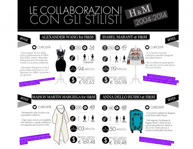 Quest’anno H&M compie dieci anni di collaborazioni illustri con stilisti e nomi “blasonati” della moda. Il mega e-store “aggregatore”, Stylight.it ha stilato l’elenco completo di tutte le collaborazioni, corredato da dettagli e curiosità (prezzo medio dei capi, percentuale d’acquisto femminile o maschile e molto altro).