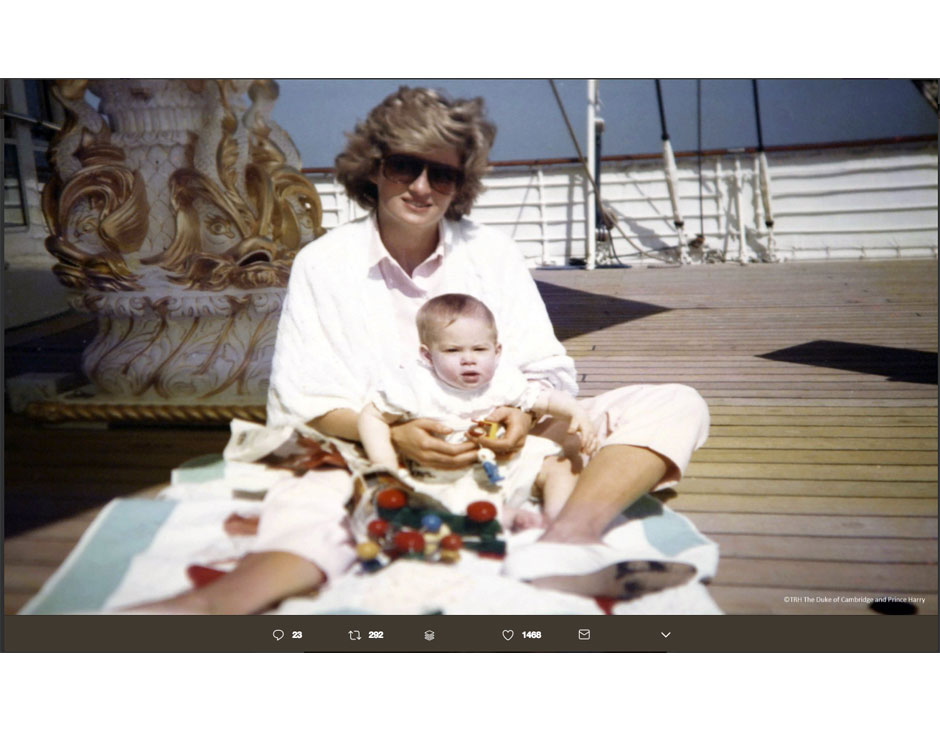 La principessa Diana, con il principe Harry (Kensington Palace/Twitter).